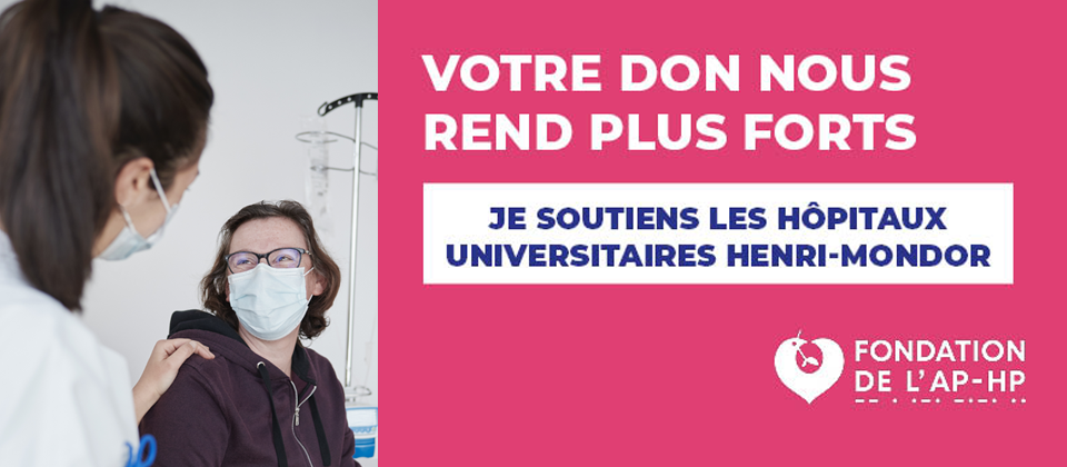 Offre de soins hôpital Henri Mondor Rejoignez-nous Votre don nous rend plus fort Informations visites Actualités Ouverture du nouveau service UGA-SMR sur le site Georges Clémenceau (91) Journée Internationale des Maladies Rares 2026 : rendre visible l’invisible ! Recrutement de volontaires sains Découvrez notre première newsletter dédiée à la cancérologie GHU Henri-Mondor : Les chiffres clés 2024 Don d’organes : une première sous protocole Maastricht 3 Nouvel Institut Universitaire du Cancer Henri-Mondor Ouverture d’un centre de prélèvements sanguins & urinaires Témoignage Téléthon 2025 – Maladies Rares Masque obligatoire dans les espaces accueillant des patients Inauguration du S.A.U. rénové de l'hôpital Henri-Mondor Calipsso 2025 : un élan collectif au service des patients Trouver un médecin Trouver une consultation Mots clés Hôpital Hôpital Choisir un Hôpital... Albert-Chenevier Ambroise-Paré Antoine-Béclère Armand-Trousseau Avicenne Beaujon Berck Bicêtre Bichat - Claude-Bernard Bretonneau Broca Charles-Foix Cochin Corentin-Celton Emile-Roux Fernand-Widal Georges-Clémenceau HEGP Hendaye Henri-Mondor Hospitalisation à Domicile Hôtel-Dieu Jean-Verdier Joffre-Dupuytren La Collegiale La Roche-Guyon Lariboisière Louis-Mourier Necker-Enfants Malades Paul-Brousse Paul-Doumer Pitié-Salpêtrière Raymond-Poincaré René-Muret Robert-Debré Rothschild Saint-Antoine Saint-Louis Sainte-Périne - Rossini - Chardon-Lagache San-Salvadour Tarnier Tenon Vaugirard - Gabriel-Pallez Nos Consultations Prise de rendez-vous en ligne Pré-admission en ligne Paiement en Ligne Accès Faire un don Recrutement Nos Hôpitaux Hôpital Emile RouxHôpital Georges ClemenceauHôpital Albert ChenevierHôpital Dupuytren Partenariat Assistance Publique Hôpitaux de ParisUniversité Paris Est CréteilInstitut Mondor de Recherche BiomédicaleLe réseau de santé SINDEFI-SEPRéseau des CHU Centre Hospitalier Intercommunal de CréteilCentre Hospitalier du Sud Seine & MarneHAS : QualiscopeCentre de ressources & de compétences Sclérose en plaques ESMARA - Plateforme d'Expertise Maladies Rares Grand Paris Est Notre chaine Youtube